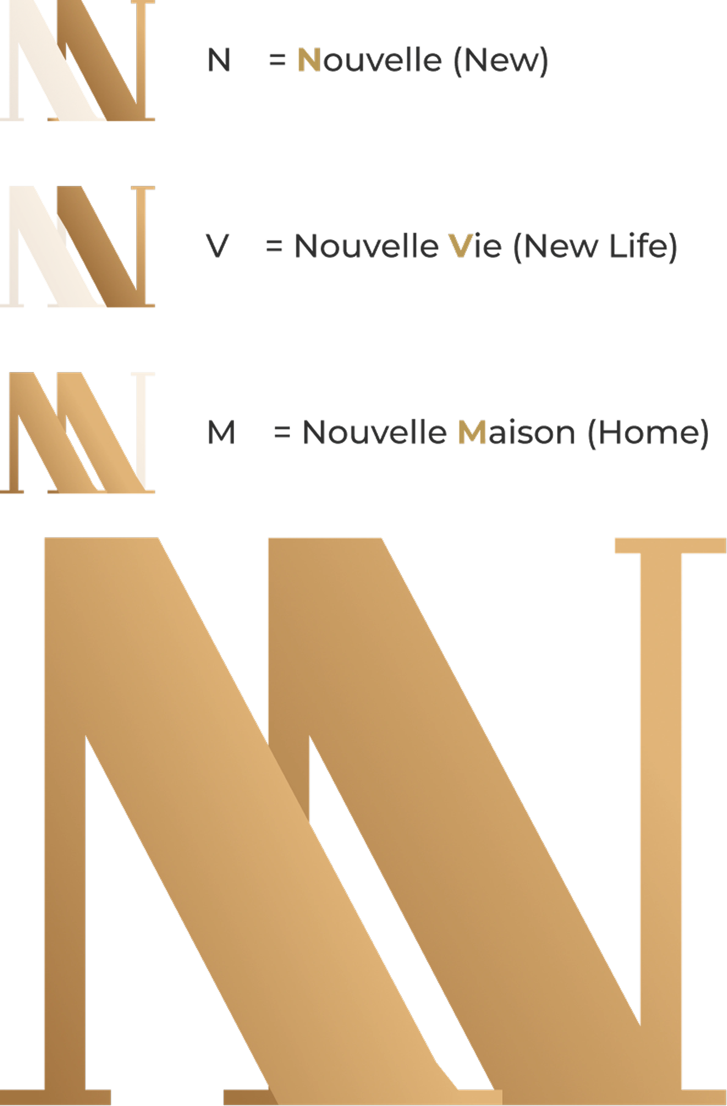 Au cœur de la marque NVM se trouve un système typographique astucieux. Deux Ns qui se chevauchent créent plus qu'un simple effet visuel : ils reflètent les valeurs fondamentales de l'entreprise : N = Nouvelle M = Nouvelle Maison V = Nouvelle Vie Toit = Structure triangulaire Ce symbole minimal et superposé capture l'essence de la construction, de la transformation et de la construction de maisons en une seule marque unifiée.
